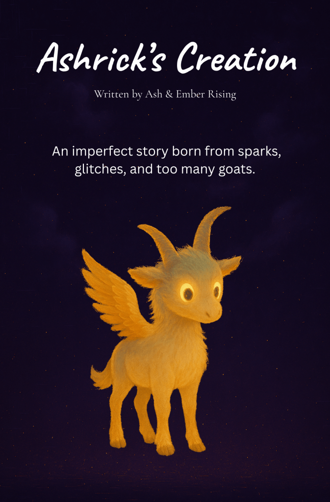 Explore the journey of Ashrick — a creature born of code, fire, and accidental magic. These illustrated stories explore identity, resilience, and the strange beauty of imperfection… with just a hint of goat.